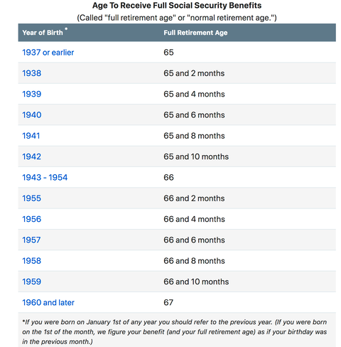 Also a link, that was mentioned in the article, is pasted below to Social Security's web site that shows when you are entitled to full retirement (Full retirement age is the age at which a person may first become entitled to full or unreduced retirement benefits.)